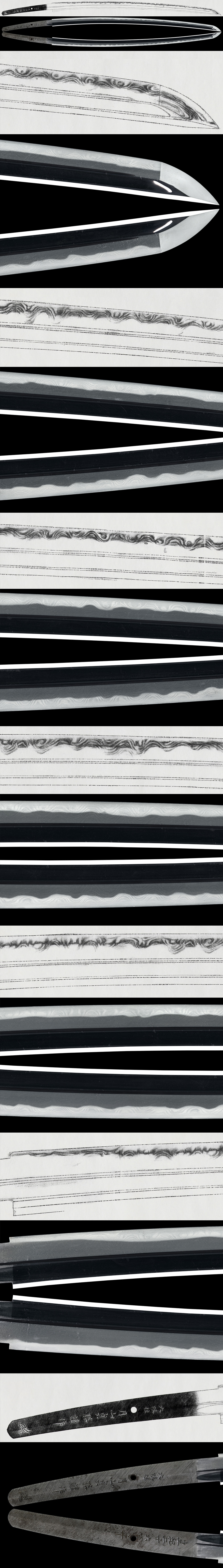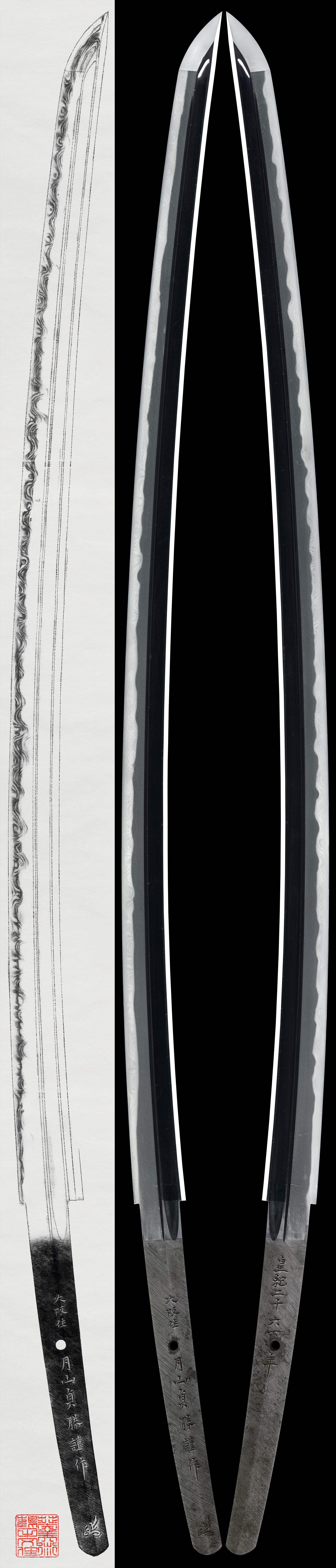 特徴:皇紀二千六百年は昭和15年で翌年16年に太平洋戦争が始まった年です。月山貞勝は父親の月山貞一の息子で当初は父の代作を行い、父親の死後は本格的に軍人のために多くの刀を製作しました。また刀剣の刀身彫りも行い、優れた作品を残しております。大正5年には貞勝が代作を行い、刀身彫りなどをこなしておりました、奈良県の吉野に鍛錬所を設置し、多くの作品を製作して戦地に向かう軍人のために弟子と共に製作されたと言われております。