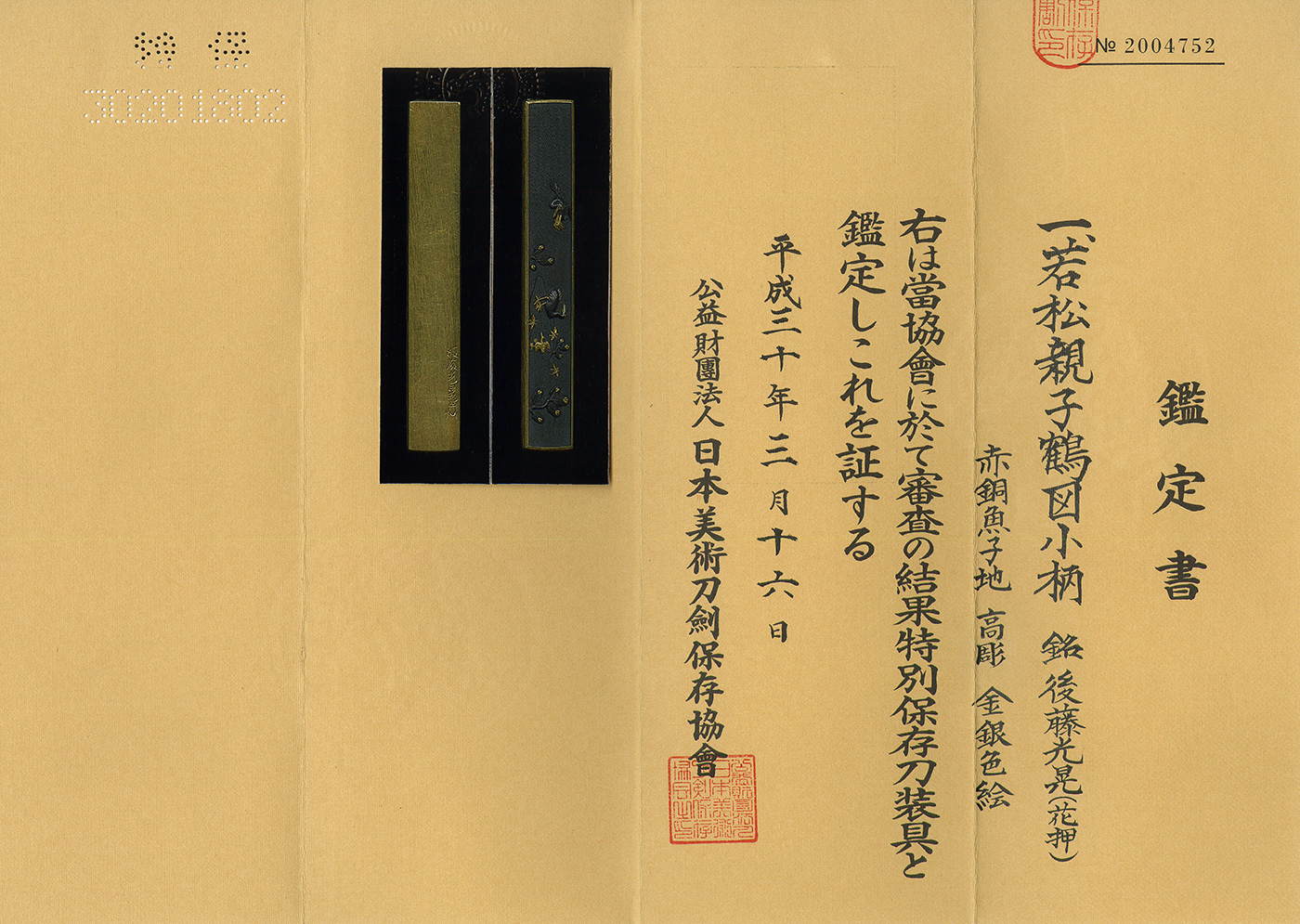 小柄:若松親子鶴図小柄(特別保存刀装具)