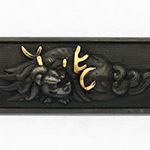 特徴:赤銅魚子地に菖蒲の図を高彫りし、金色絵を施す。一部剥がれてしまっています。