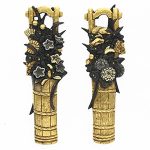 特徴:四分一銀地に雌鹿の図を容彫り植物を金色絵する。