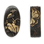 特徴:赤銅地に高官のような人物を高彫り金色絵を施す。
