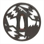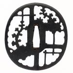 特徴:丸形鉄地に鞍の図を肉彫地透かし表す。