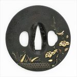 特徴:縦円形鉄地に金布目象嵌を施す。