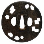 時代:江戸時代 特徴:縦円形の鉄磨き地に茄子の図を透かし掘り金色絵を施す。